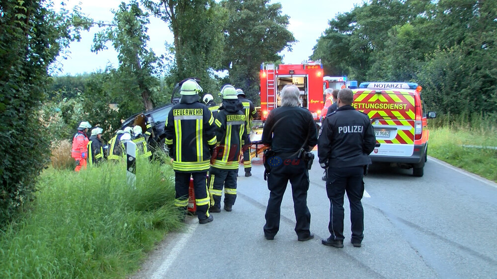 Am frühen Morgen, gegen 05.30 Uhr, ist kurz nach dem Ortsausgang Grinau in Fahrtrichtung Schenkenberg ein 26 jähriger Mann mit seinem Passat VR6 von der Strasse abgekommen und mit einem Baum kollidiert. Der Fahrer wurde in seinem Fahrzeug eingeklemmt und musste von der Feuerwehr befreit werden. Aufgrund der Alarmierung waren insgesamt 4 Feuerwehren aus Siebenbäumen, Grinau, Bliestorf und Kastorf mit insgesamt 66 Einsatzkräften vor Ort. Die Feuerwehr Bliestorf konnte den Fahrer in gut 20 Minuten aus dem Fahrzeug befreien und de Patient an den Rettungsdienst übergeben. Vor Ort wurde der Zustand des Fahrers als kritisch bezeichnet. Nach erheblicher Zeit an Stabilisierung im Rettungswagen wurde der Schwerverletzte in Begleitung eines Notarztes in eine Klinik nach Lübeck gebracht. Offensichtlich hatte der Fahrer noch versucht sein Fahrzeug zum Stehen zu bringen. Auf der Hauptstrasse ist eine lange Bremsspur zu sehen. Während der Rettungsarbeiten war die Hauptstrasse in beiden Richtungen voll gesperrt.