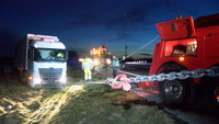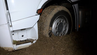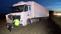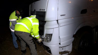 Ein etwas ungewöhnliches Bild bot sich am Sonntag Nachmittag den Nutzern der BAB 1 zwischen dem Kreuz Bargteheide und der Abfahrt Bad Oldesloe. Etliche Meter neben der Autobahn stand ein schneeweiser 40-Tonner mitten in einem Feld auf Höhe der Genmeinde Pölitz. Was war passiert? Nach Angaben des spanischen Fahrer des LKW wurde er zuvor von einem anderen Lastkraftwagen geschnitten und konnte nur durch die unfreiwillige Fahrt in das Feld einen Zusammenstoß vermeiden. Welche Schubkraft hinter einem solchen Gespann liegt, wurde eindrucksvoll klar. Erst nach gut 100 Metern blieb der mit 27 Tonnen Obst und Gemüse beladene LKW in dem tiefen Boden des Feldes stecken.