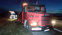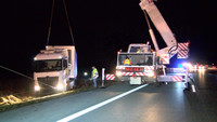 Mit einem Kran und zwei für Schwerlastbergung spezialisierte Fahrzeuge wurde das Fahrzeug sehr schonend vorsichtig aus der misslichen Lage gezogen. Ohne ersichtlich größere Beschädigngen konnte der Fahrer daraufhin seine Fahrt Richtung Helsingborg in Finnland fortsetzen. Während der Bergung wurde durch die Autobahnpolizei der rechte Fahrstreifen gesperrt. Eine Beeinträchtigung des Verkehrs ist daraus nicht entstanden.