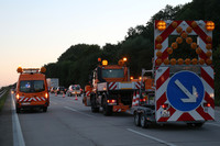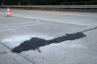 Die entstandenen Schadstellen waren derart groß, dass zwei Fahrspuren Richtung Hamburg von der Polizei und der Autobahnmeisterei gesperrt werden mussten. Der Verkehr wurde auf der verbleibenden Fahrspur und dem Standstreifen an der beschädigten Stelle vorbeigeführt. Das größte Loch wurde von der Autobahnmeisterei notdürftig mit Teer verfüllt. Ein Befahren an dieser Stelle ist allerdings nach Auskunft der Autobahnmeisterei vor einer ordentlichen Instandsetzung erst einmal nicht möglich. Problematisch: Auch auf der verblieben Fahrbahn hat sich ebenfals schon eine reparaturbedürftige Schädigung gebildet. Die Herausforderung liegt nun darin, alle beschädigten Stellen vor dem Wochenende so zu reparieren, dass eine Beeinträchtigung für den am Wochenende erwartenden Reiseverkehr möglichst zu vermeiden.