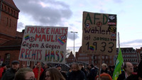 Dem Aufruf "Solidarisch gegen den Hass" folgten ca. 200 Personen - diese Kundgebung wurde um 19:25 Uhr durch die Anmelderin für beendet erklärt. Der DGB mobilisierte ca. 400 Personen. Diese Kundgebung wurde um 19:35 Uhr beendet.
