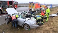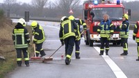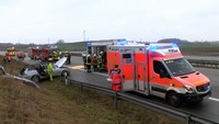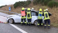 Zu einem schweren Verkehrsunfall ist es am Dienstagvormittag auf der BAB 20 in Höhe der Ausfahrt Mönkhagen gekommen. Gegen 11 Uhr verlor ein, aus Richtung Bad Segeberg kommender, BMW-Fahrer aus bisher unbekannter Ursache die Kontrolle über sein Fahrzeug. Kurz nach einer lang gezogenden Rechtskurve kam der 52jährige mit seinem 5er BMW nach rechts von der Fahrbahn ab und fuhr in den neben der Fahrbahn liegenden Grünstreifen. Infolge dessen überschlug sich der BMW, ersten Angaben der Polizei zufolge, mehrfach und kam schlussendlich genau auf der ansteigenden Leitplanke der Mönkhagener Ausfahrt auf allen vier Rädern zum Stillstand. Ersthelfer kümmerten sich bis zum Eintreffen des Rettungsdienstes um den im Fahrzeug befindlichen 52jährigen. Aufgrund der Schwere der Verletzungen, forderten die beiden eingesetzten Notärzte die Feuerwehr für eine patientengerechte Rettung aus dem Fahrzeug an. Mit 15 Mann rückten die Freiwilligen Feuerwehren Geschendorf, Strukdorf und Westerrade zur Einsatzstelle an. Unter Zuhilfenahme von hydraulischem Gerät wurde das komplette Dach des BMW Kombi abgetrennt und der Patient mit Hilfe eines Spineboards über das Heck aus dem Fahrzeug gehoben. Nach der Erstversorgung durch den Notarzt wurde er in dessen Begleitung schwer verletzt mit dem Rettungswagen in eine Lübecker Klinik gefahren. Am Fahrzeug hatte keiner der vorhandenen Airbags ausgelöst. Der BMW musste durch ein Abschleppunternehmen geborgen werden. Der Verkehr wurde während des Einsatzes einspurig an der Unfallstelle vorbeigeführt. Nur während der Bergung des Fahrzeuges mussten die Fahrspuren in Richtung Lübeck für etwa 20 Minuten voll gesperrt werden.