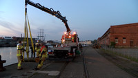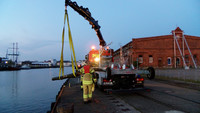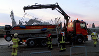 Am Samstag Abend musste die Lübecker Feuerwehr ihr Mehrzweckboot zu Wasser lassen. Anlass waren zwei große Baumstämme die an den Mediadocks im Wasser schwammen. Ein Bootsführer hatte der Polizei eine Beinahekollission mit einem der Baumstämme gemeldet. Die angerückte Feuerwehr bestätigte die Gefahr für den Schiffsverkehr und beseitigte die beiden Baumstämme mittels Mehrzweckboot und Kran aus dem Fahrwasser. Wie die beiden großen Stämme ins Fahrwasser geraten konnten ist nicht bekannt. Wäre es allerdings zu einer Kollission mit einer der vielen Yachten oder sonstigen Wasserfahrzeugen gekommen, hätte dies schwerwiegende Folgen haben können.
