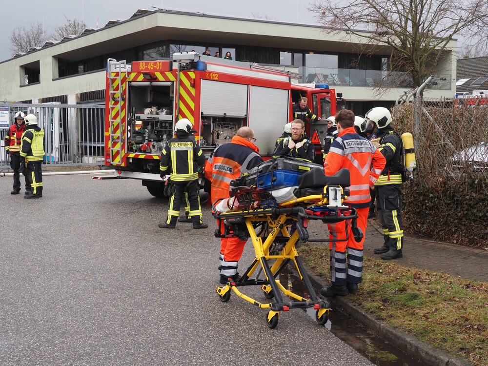 Vor Ort bestätigte sich die Lage: Schwarzer Rauch drang aus dem Fenster des betroffenen Unternehmens. Der Einsatzleiter ließ umgehend einen Angriffstrupp unter Atemschutz in das Gebäude vordringen. Glücklicherweise hatten alle Personen das Gebäude bereits verlassen. Der Löschtrupp konnte die Brandstelle rasch lokalisieren und das Feuer unter Kontrolle bringen.