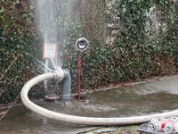 Wenige Minuten später kam ein Hochdrucklüfter zum Einsatz, um das Gebäude vom dichten Rauch zu befreien. Nach etwa 30 Minuten konnte der Leitstelle „Feuer aus“ gemeldet werden und die Nachlöscharbeiten begannen. Währenddessen warfen Einsatzkräfte angebrannte Materialien und Büroeinrichtung aus dem Fenster, um ein erneutes Aufflammen zu verhindern.