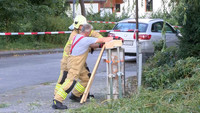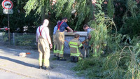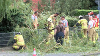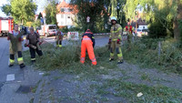 In der Schwartauer Alle ist gegen 19:00 Uhr der Stamm einer Weide umgeknickt und auf den Parkplatz eines Hochhauses gekracht. Drei dort angestellte Fahrzeuge wurden von dem massiven Stamm getroffen und zum Teil schwer beschädigt. Das nicht mehr geschehen ist, grenzt fast an ein Wunder, so die Meinung der Bewohner. Angekündigte Bauarbeiten am Gebäude haben dafür gesorgt, dass fast alle Bewohner ihre Fahrzeuge auf einem anderen Parkplatz abgestellt hatten. Der schwer beschädigte VW Bus gehörte so zum Beispiel einem Besucher. Ebenso hätte der Stamm auf die viel befahrene Strassenseite und den dazugehörigen Gehweg stürzen können. Nicht auszumalen was dann hätte passieren können. Stundenlang war die Lübecker Berufsfeuerwehr damit beschäftigt, die aus zwei Stmmteilen bestehende Weide Meter für Meter zu fällen. Ein direkt unter der Weide befindlicher Stromverteiler hat die einfache Fällung der Baumes verhindert. Gut 4000 Haushalte werden über diesen Verteiler versorgt, so die Information des Einsatzleiters der Feuerwehr. Auch er ist froh über den relativ glimpflichen Ausgang des Baumfalles.