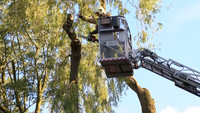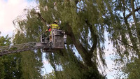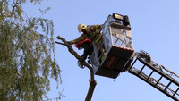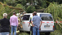 Stamm von über 20 Meter hohen Weide kracht auf Parkplatz