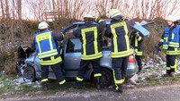 Bei einem Verkehrsunfall bei Sandesneben wurden am Mittwochmorgen mehrere Menschen schwer verletzt. Eine 31-Jährige Frau musste von der Feuerwehr aus ihrem Fahrzeug befreit werden. Die Straße soll spiegelglatt gewesen sein.