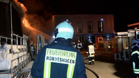 Meterhoch waren die Flammen schon auf der Anfahrt zu sehen. Der Nachthimmel gegen 22:00 Uhr hell erleuchtet. Schnell war klar dass dieser Einsatz Stunden in Anspruch nehmen würde. Aus bisher ungeklärter Ursache war die Lagerhalle eines Veranstaltungsunternehmers in Brand geraten. Innerhalb weniger Minuten stand diese im Vollbrand. Insgesamnt 90 Feuerwehrleute aus 9 Wehren hatten bis in die frühen Morgenstunden zu kämpfen um das Feuer zu löschen. In der Halle waren offensichtlich unter anderem Verkaufstände gelagert, welche für unterschiedliche Weihnachtsmärkte vorbereitet wurden. Es sollen sich zum Zeitpunkt des Ausbruchs auch Arbeiter in dem Hallenkomplex aufgehalten haben, welche sich glücklicherweise rechtzeitig in Sicherheit bringen konnten. 9 Strahlrohre, ein Waserwerfer und der Teleskopmast der Ratzeburger Feuerwehr waren notwenidg um das Feuer schlussendlich unter Kontrolle zu bringen. Die B 208 war aufgrund des Einsatzes stundenlang gesperrt. Noch während der Löscharbeiten haben Beamte des Kriminaldauerdienstes die Ermittlungen zur Brandursache aufgenommen. Verletzt wurde bei dem Großfeuer glücklicherweise niemand. Der Sachschaden wird auf mindestens 250.000 Euro geschätzt.
