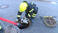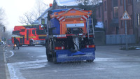 Die Königsstrasse war während der Löscharbeiten voll gesperrt. Bei den niedrigen Temperaturen hatte sich an einigen Stellen die Fahrbahn in eine Eisfläche verwandelt. Mitarbeiter des Bauhofes rückten mit einem Streufahrzeug an um die Strasse wieder befahrbar zu machen.
