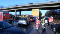 Gegen 13.25 ist es heute nachmittag zwischen dem Kreuz Bargteheide und Bad Oldesloe zu einem Massenunfall gekommen. Auslöser hierfür war nach ersten Informationen ein vorangegangener Hagelschauer, der die Fahrbahn in beiden Fahrtrichtungen in eine Rutschbahn verwandelte. Nachdem es Richtung Süden nur zu kleineren Unfällen kam, krachte es in Fahrtrichtung Lübeck um so heftiger.
