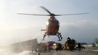 Am Dienstag den 27.02.2018 kam es zwischen 13:50 Uhr und 18:00 Uhr auf der BAB 24 zwischen den Anschlusstellen Schwarzenbek/Grande und Talkau zu mehreren Unfällen. Die beiden größten mit gut 30 beteiligten Fahrzeugen ereigneten sich an zwei gut 700 Meter voneinander entfernten Stellen vor und hinter der Basthorster Brücke. Dort gerieten mehrere LKW und Pkw bei dichtem Schneetreiben und einsetzendem Blitzeis ins Schleudern und sind kollidiert. Am schlimmsten traf es einen Tanklastwagen, dem bei dem Unfall das gesante Führerhaus abgerissen wurde. Am Stauende wurde ein PKW unter einen LKW geschoben. Die Fahrerin des PKW wurde hierbei schwer verletzt. Insgesamt wurden bei den Unfällen nach Angaben der Polizei drei Personen schwer und neun Personen leicht verletzt. Diese wurden mit Rettungshubschrauber und Rettungswagen in umliegende Krankehäuser gebracht. Der Grossalarm rief zahlreiche Rettungskräfte auf den Plan. In Zahlen stellt sich dies wie folgt dar: 2 Einsatzleitungen, 9 Funkstreifenwagen, 3 Rettungshubschrauber, 4 Notarztwagen, 2 leitende Notärzte, 22 Rettungswagen aus Schleswig-Holstein und Mecklenburg-Vorpommern, 8 Feuerwehren (Kasseburg, Schwarzenbek, Grande, Talkau, Kuddewörde, Tramm, Elmenhorst, Mölln), 36 Fahrzeuge der Schnelleinsatzgruppe Kreis Hzgt. Lauenburg und Stormarn.