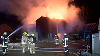 Nachdem es 3 Stunden zuvor in Kastorf ein Großfeuer in Kastorf gegeben hatte, ist gegen 00:20 Uhr keine 6 Kilometer entfernt erneut Sirenengeheul zu hören. Anlass war ebenfalls ein Großfeuer, welches diesmal in Duvensee ausgebrochen war. Nachbarn hatten Flammen im Dach eines etwa hundert Jahre alten Pferdestalls auf einem Reiterhof entdeckt, und umgehend die Feuerwehr informiert. Zu diesem Zeitpunkt stand das Dachdes Gebäudes schon in Vollbrand. Geistesgegenwärtig und nur in Schlafzeug bekleidet ist das Junge Paar zum Stall geeilt und hat mit Hilfe eines weiteren Herrn, sieben sich im Stall befindliche Pferde aus dem brennenden Gebäude befreit. Diese wurden in die benachbarte Reithalle gebracht. Beim Eintreffen der Feuerwehr stand kurze Zeit später das gesamte Gebäude im Vollbrand. 10 Strahlrohre, die Unterstützung der Möllner Feuerwehr mit ihrer Leiter, sowie etwa 100 Einsatzkräfte aus zehn Feuerwehren bedurfte es bis in die frühen Morgenstunden um den Brand unter Kontrolle zu bringen. Während der Löscharbeiten stürzte ein Teil des Gebäudes ein. Eine Baufachberaterin des THW wurde zum Brandort gerufen, um das einsturzgefährdete Stallgebäude zu begutachten und notwendige Maßnahmen in die Wege zu leiten.