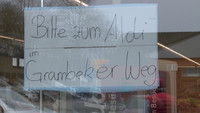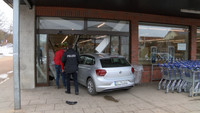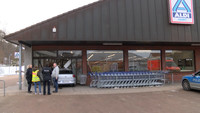 Die Eingangsschleuse wurde allerdings komplett zerstört. Selbst Teile der Deckenkonstruktion haben sich gelöst, weshalb ein Statiker nun den Schaden begutachten muss. Für die Filiale bedeute dies wahrscheinlich zumindest ein bis zwei Tage die Schliessung, so die Befürchtung der stellvertretenden Filialleiterin. Noch während des Einsatzes wurde ein Hinweisschild auf den nächstbefindlichen ALDI Markt im Schaufenster angebracht.