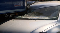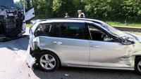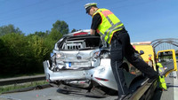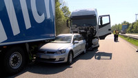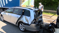 Fast an gleicher Stelle, also kurz vor der Eisenbahnbrücke vor Lübeck Dänischburg, ist am Montag Morgen gegen 08:50 Uhr schon wieder ein LKW Fahrer in eine Stauende gekracht. Der 53-Jährige hat wohl das Stauende übersehen und ist trotz eingeleiteter Notbremsung auf den VW Golf einer 35-jährigen Lübeckerin aufgefahren. Dabei hat er den PKW unter den Auflieger eines davor stehenden Lastzuges geschoben. Die Fahrerin wurde durch die herbeigerufenen Helfer versorgt und schwer verletzt in ein umliegendes Krankenhaus gebracht. Der Verkehr wurde während der Rettungs- und Bergungsarbeiten einspurig an der Unfallstelle vorbeigeleitet. An den Fahrzeugen enstand nach ersten Einschätzungen ein Schaden von ca. 43.000 Euro. Gegen 12:00 Uhr konnten die Fahrspuren wieder vollständig frei gegeben werden. Der Fahrer des polnischen LKW erlitt bei dem Unfall einen Schock.
