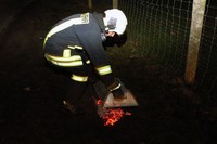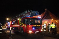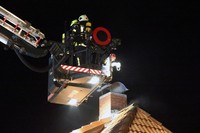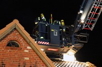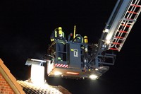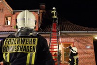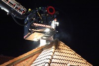 Am Montag Nachmittag kam es gegen 17:45 Uhr zu einem Einsatz für die Feuerwehren Rondeshagen, Berkenthin, Kasdorf und Sierksrade. Grund: In der Strasse Zum Gutshof schlugen gut sichtbar Flammen aus dem Kamin einer Doppelhaushälfte. Nach kurzer Erkundung im Inneren des Hauses entschieden sich die eingesetzten Helfer über eine Steckleiter von aussen das Dach mit Wasser zu kühlen. Nach kurzer Zeit drang allerdings Rauch aus den Dachpfannen direkt um den Schornstein herum. Um Gefahren für die Feuerwehrleute auszuschliessen, liess der Einsatzleiter das Teleskopmast-Löschfahrzeug aus Ratzeburg zur Einsatzstelle rufen. Mit Hilfe dieses Löschgerätes öffneten Atemschutzträger Stücke des Daches rings um den Schornstein.
