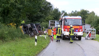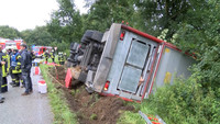 Auf der B 404 in Höhe Lütjensee ist am Mittag ein Tiertransport mit zahlreichen Schweinen als Ladung verunglückt. Der LKW kam in der Auffahrt Dwerkaten von der Fahrbahn ab und landete halb auf dem Dach. Bei dem Unfall wurde der Fahrer im Führerhaus eingeklemmt und schwer verletzt. Mit schwerem Gerät konnte die Feuerwehr den Fahrer nach gut 40 Minuten befreien und dem Rettungsdienst übergeben.