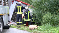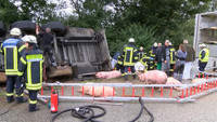 Rettung von Fahrer und Schweinen schwierig