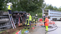 Für die Schweine wurde ein zweiter LKW zum Abtransport bereitgestellt. Die Unfallursache ist noch nicht bekannt.