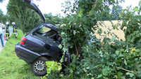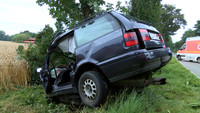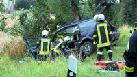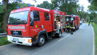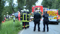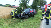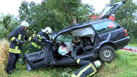 Am frühen Morgen, gegen 05.30 Uhr, ist kurz nach dem Ortsausgang Grinau in Fahrtrichtung Schenkenberg ein 26 jähriger Mann mit seinem Passat VR6 von der Strasse abgekommen und mit einem Baum kollidiert. Der Fahrer wurde in seinem Fahrzeug eingeklemmt und musste von der Feuerwehr befreit werden. Aufgrund der Alarmierung waren insgesamt 4 Feuerwehren aus Siebenbäumen, Grinau, Bliestorf und Kastorf mit insgesamt 66 Einsatzkräften vor Ort. Die Feuerwehr Bliestorf konnte den Fahrer in gut 20 Minuten aus dem Fahrzeug befreien und de Patient an den Rettungsdienst übergeben. Vor Ort wurde der Zustand des Fahrers als kritisch bezeichnet. Nach erheblicher Zeit an Stabilisierung im Rettungswagen wurde der Schwerverletzte in Begleitung eines Notarztes in eine Klinik nach Lübeck gebracht. Offensichtlich hatte der Fahrer noch versucht sein Fahrzeug zum Stehen zu bringen. Auf der Hauptstrasse ist eine lange Bremsspur zu sehen. Während der Rettungsarbeiten war die Hauptstrasse in beiden Richtungen voll gesperrt.