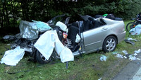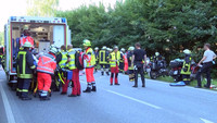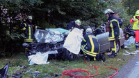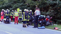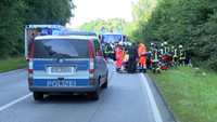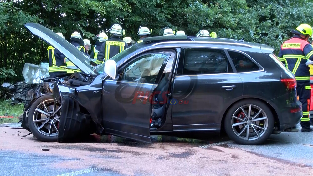 Schon wieder ist es auf der B404 in Höhe Grönwohld zu einem schweren Verkehrsunfall gekommen. Ein Lexus IS200 aus Berlin und ein Audi Q5 aus Heidelberg sind aus bisher ungeklärter Ursache gegen 17:45 Uhr auf gerader Strecke frontal zusammen gestoßen. Unter den Insassen der Fahrzeuge befanden sich auch 3 Kinder und ein kleiner Hund. Die Fahrerin des Lexus wurde bei dem Unfall eingeklemmt und musste von der Feuerwehr aus dem Fahrzeug befreit werden. Sowohl sie, als auch ein weiterer Fahrzeuginsasse wurden mit schwersten Verletzungen von den beiden an die Unfallstelle beorderten Rettungshubschraubern in umliegende Kliniken geflogen. Die 6 weiteren Verletzten, wovon eine Person ebenfalls schwer verletzt, wurden mit Rettungswagen in umliegende Krankenhäuser gebracht. Der völlig geschockte Hund wurde vor Ort von einem Polizeibeamten betreut. Zwei Motorradfahrer, welche direkt hinter einem der Unfallbeteiligten waren, konnten ihre Motorräder noch rechtzeitig zum Stehen bringen und Erste Hilfe leisten. Aufgrund der vielen Verletzten wurden Rettungsdienste aus dem gesamten Umkreis zur Unfallstelle beordert.