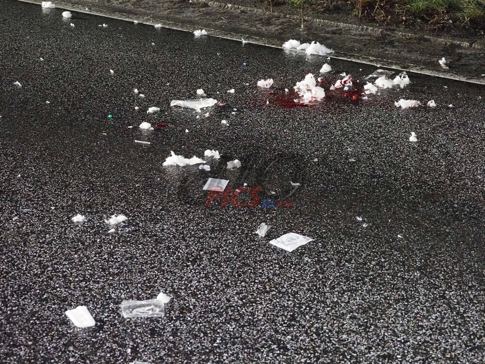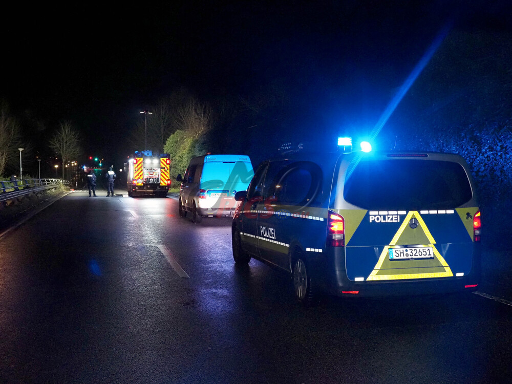 Ein Blutfleck, Füllwatte die vermutlich von einer Jacke stammt, eine Vollsperrung und zwei Fahrzeuge von Feuerwehr und Polizei, die mit Blaulicht auf der B207 zwischen dem Hochstuhlstadtteil und der Kronsforder Allee in Lübeck stehen. Das ist alles was am frühen Freitagmorgen auf ein Drama, welches sich in der Nacht abgespielt haben muss hindeutet. Begonnen, so ist von einem Sprecher der Polizei zu erfahren, hat alles mit einem um 02.30 Uhr eingegangen Notruf. In diesem hat ein Autofahrer eine auf der B207 liegende Person gemeldet. Umgehend werden Rettungsdienst, ein Notarzt sowie Streifenwagen der Polizei auf die B207 geschickt. Vor Ort treffen sie auf eine auf der Bundesstraße liegende 23-jährigen Frau, die unverkennbar schwerste Verletzungen erlitten hat. Rettungsdienst und Notarzt kümmerten sich um die Frau und mussten diese nach ersten Informationen reanimieren. Nach der Erstversorgung wurde sie in Begleitung des Notarztes in eine umliegende Klinik gefahren. Nach Informationen der Polizei besteht akute Lebensgefahr.