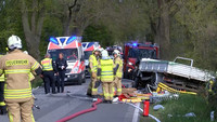 Am heutigen Nachmittag ist es gegen 16:10 Uhr auf der L02 zwischen Lüdersdorf und Herrnburg zu einem schweren Unfall gekommen. Auf gerader Strecke sind aus bisher unbekannter Ursache ein Smart und ein VW Pritschentransporter frontal zusammen gestoßen. Im Smart saßen zwei 20 und 17 Jahre alte Schwestern. Beide wurden bei dem Unfall schwer verletzt. Der 52-jährige Fahrer des Transporter wurde in seinem Fahrzeug eingeklemmt und musste von der Feuerwehr aus seinem Fahrzeug befreit werden. Hierzu wurde das gesamte Dach entfernt. Auch er wurde schwer verletzt und ist wie die beiden Schwestern mit dem Rettungswagen nach Lübeck in eine Klinik gebracht worden. Die L02 wurde während der Rettungsarbeiten vollständig gesperrt. Zur Klärung der Unfallursache wurde ein Sachverständiger bestellt. Die Feuerwehr Herrnburg, Palingen und Lüdersdorf war mit 31 Helfern im Einsatz. Zur Unterstützung des Rettungsdienstes wurde ein Rettungswagen aus Lübeck zur Unfallstelle gerufen. Die Polizei hat die Emittlungen zur Unfallursache aufgenommen.