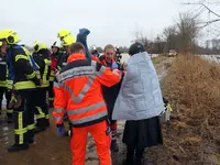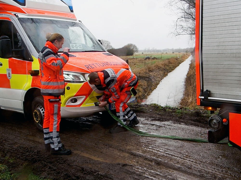 Die Reiterin selbst war ebenfalls klitschnass, blieb jedoch augenscheinlich unverletzt und wurde von der Besatzung eines Rettungswagens betreut. Mit einer Ready-Heat-Decke konnte sie sich wieder aufwärmen – ihre größte Sorge galt dem Wohl ihres Pferdes.