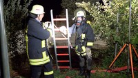 Ob die Katze nun mit Repräsalien zu rechnen hat, konnte am Abend nicht mehr geklärt werden. Die Kameraden der Benstakener Feuerwehr haben auf jeden Fall bewiesen, dass ihnen jedes Lebewesen wichtig ist und keine Idee zu fern, Leben zu retten. Erst gegen 21:45 Uhr konnten sie ihren Einsatz beenden und wurden im Anschluss von den Kameraden der eigentlich zuständigen Wehr aus Barnitz mit ordentlichem Applaus auf dem Oktoberfest begrüsst.