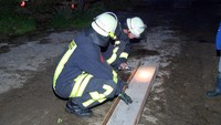Eigentlich sollte die Freiwillige Feuerwehr Benstaben ja nur den Brandschutz für ihre Kameraden der Gemeinde Barnitz während des Oktoberfestes sicherstellen. Um 18.56 Uhr lösten tatsächlich die Melder aus. Einsatzanlass war allerdings kein Feuer, sondern ein Kaninchen, welches 4 Meter tief in eine Güllegrube gefallen war. Zuvor wurde es von der hofeigenen Katze angegriffen und wollte, nachdem es sich befreien konnte, flüchten.