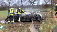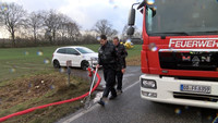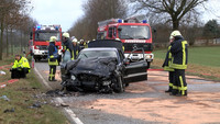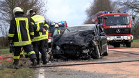 Auf der L224 stiessen ersten Erkenntnissen zufolge am Mittag des 2.Weihnachtsfeiertages ein BMW und ein Mercedes aus bisher ungeklärter Ursache frontal zusammen. Der BMW touchierte danach einen Baum, kam auf einem Feld zum Stehen und fing dort sofort Feuer. Während sich der Fahrer aus dem brennenden Fahrzeug befreien konnte, kam für den Beifahrer jede Hilfe zu spät.