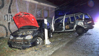 Nach dem Notruf wurde noch befürchtet, dass eine Person im Fahrzeug eingeklemmt sei. Dies hat sich nach Ankunft der ersten Einsatzkräfte jedoch nicht bestätigt. Zum genauen Unfallhergang und zur Schadenshöhe konnte die Polizei in der Nacht noch keine Angaben machen. Lediglich die Information, dass Schneeglätte wohl ursächlich für den Unfall sein dürfte, wurde bestätigt.