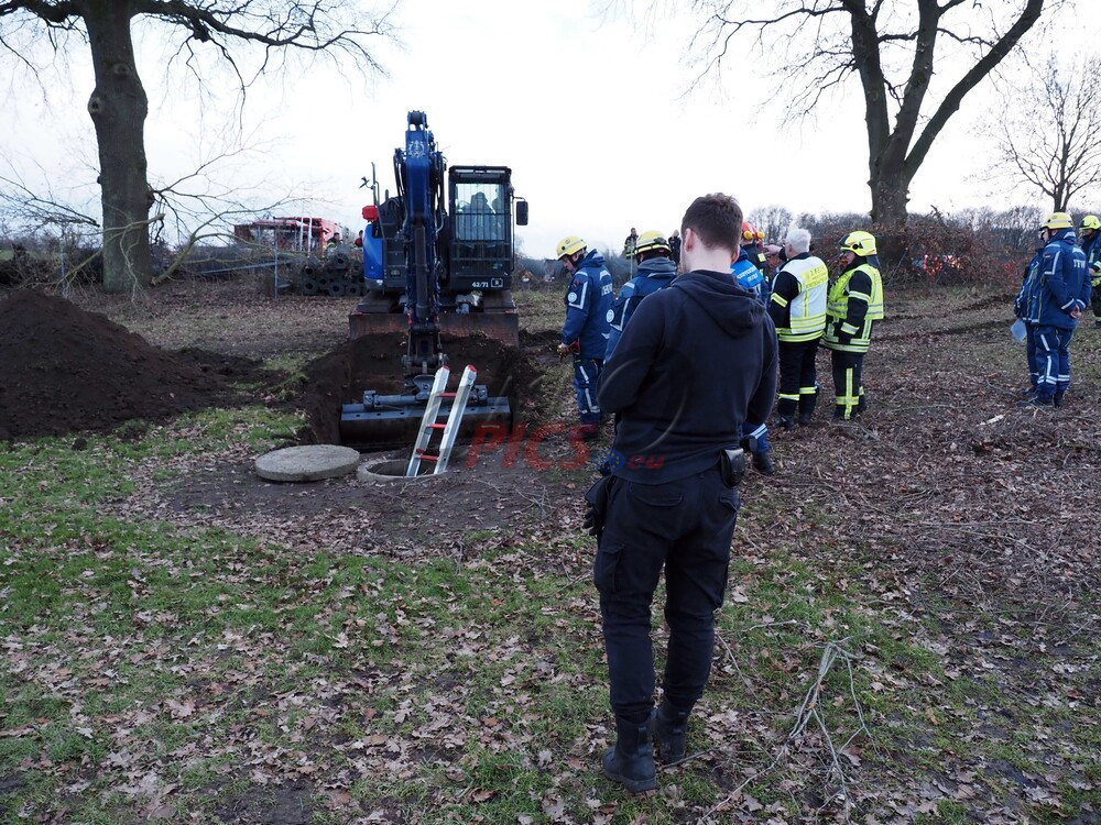 Ein Anwohner fand schließlich Donnerstagmorgen einen der beiden Hunde angeleint nahe eines Gewässers. Daraufhin vertieften die Einsatzkräfte die Suche in diesem Bereich und konnten zunächst den Leichnam des zweiten Hundes im Wasser auffinden und bergen. Im weiteren Verlauf entdeckten die Einsatzkräfte einen menschlichen Leichnam in einem von dem Bachlauf abgehenden Schacht. Die Bergungsmaßnahmen gestalteten sich sehr schwierig und dauerten mehrere Stunden an. Schlussendlich konnte die verstorbene Person aus dem Schacht geborgen werden. Die traurige Vermutung bewahrheitete sich: Bei der Verstorbenen handelte es sich um die vermisste 64-Jährige.