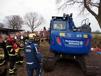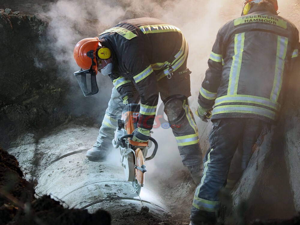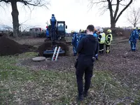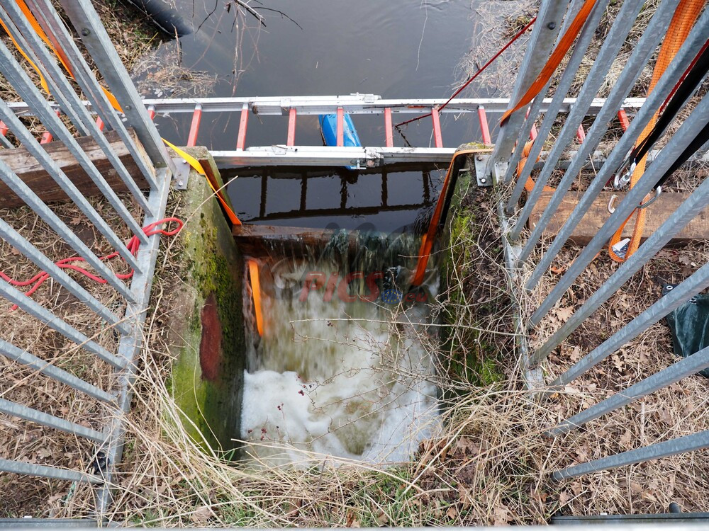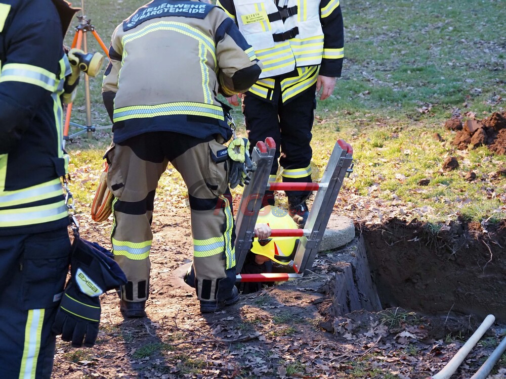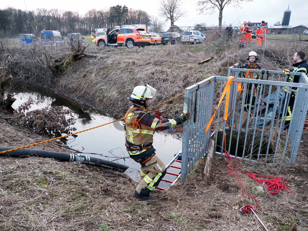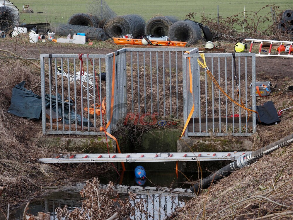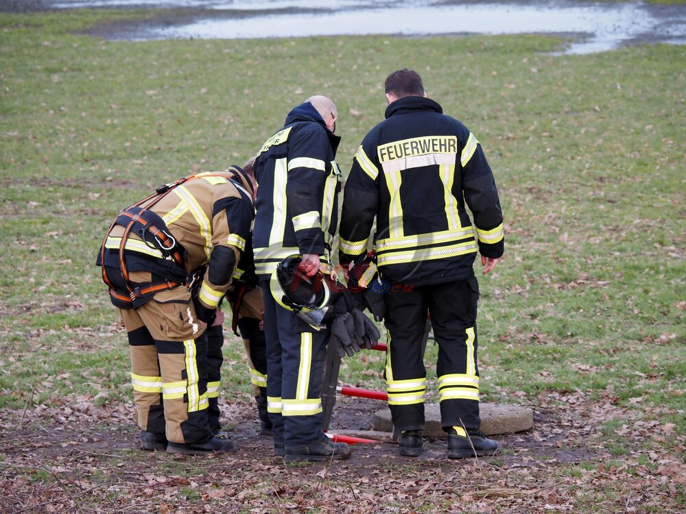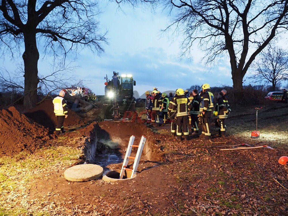 Schacht an einem Bachlauf. Der Bergungseinsatz dauerte bis in die Abendstunden an.